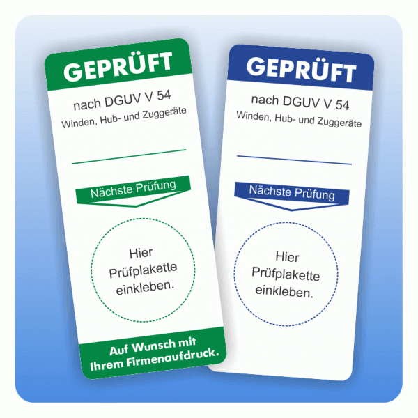 Grundetikett Geprüft nach DGUV V54 Winden, Hub- und Zuggeräte