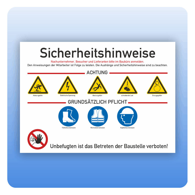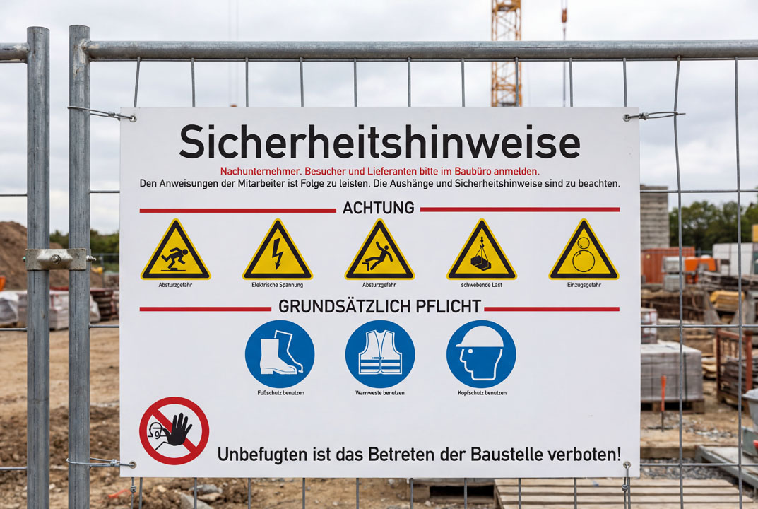 Sicherheitshinweise für Baustellen mit Anweisungen