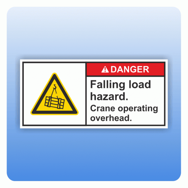 Sicherheitszeichen Falling load hazard. Crane operating overhead (ANSI Z535) Aufkleber