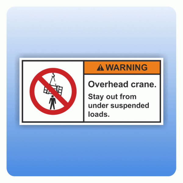 Text: Overhead crane. Stay out from under suspended loads. Formate: 35 x 75 mm, 70 x 150 mm... mehr